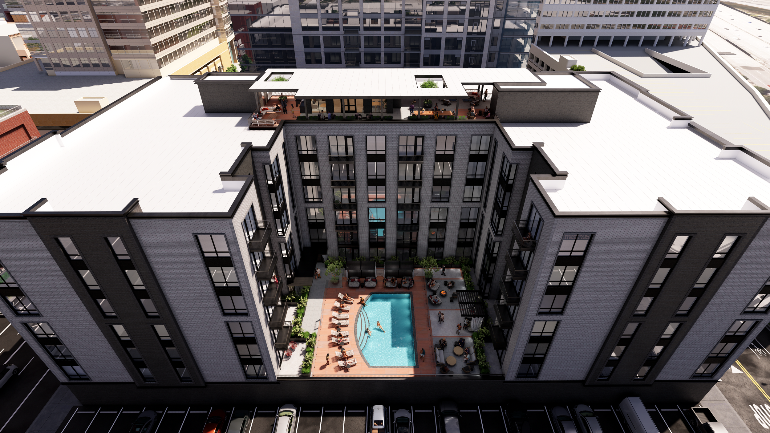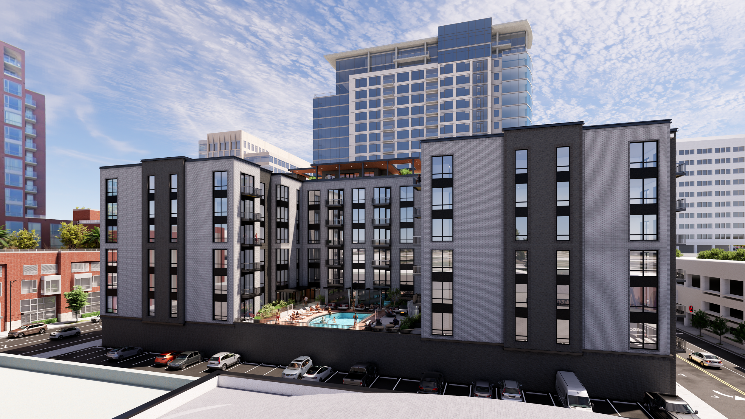 The Carlysle Apartments is a proposed 223,000 sf seven-story mixed-use apartment building with a private underground parking garage. The project consists of 148 residential units, a 4,700 sf retail space, lobby/lounge area, bike room, and a clubroom with an elevated outdoor pool courtyard and rooftop deck. The project will be located adjacent to the San Pedro Square district in Downtown San Jose.