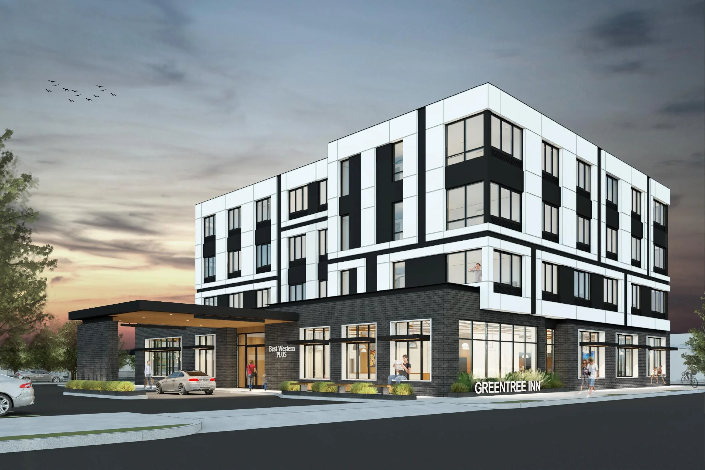 Currently in design and located across the street from the University of Oregon in Eugene, Oregon, this project includes a partial renovation of an existing hotel and a new 4-story addition. Built in 1960, the original hotel consists of three separate buildings and an outdoor swimming pool. The new design demolishes the administrative building and pool and replaces it with a new structure, providing 46 additional guest rooms, breakfast room, full bar, meeting rooms, offices and an indoor pool. The remaining two buildings will undergo an exterior renovation and the guest rooms will be upgraded to the new suite standards.
