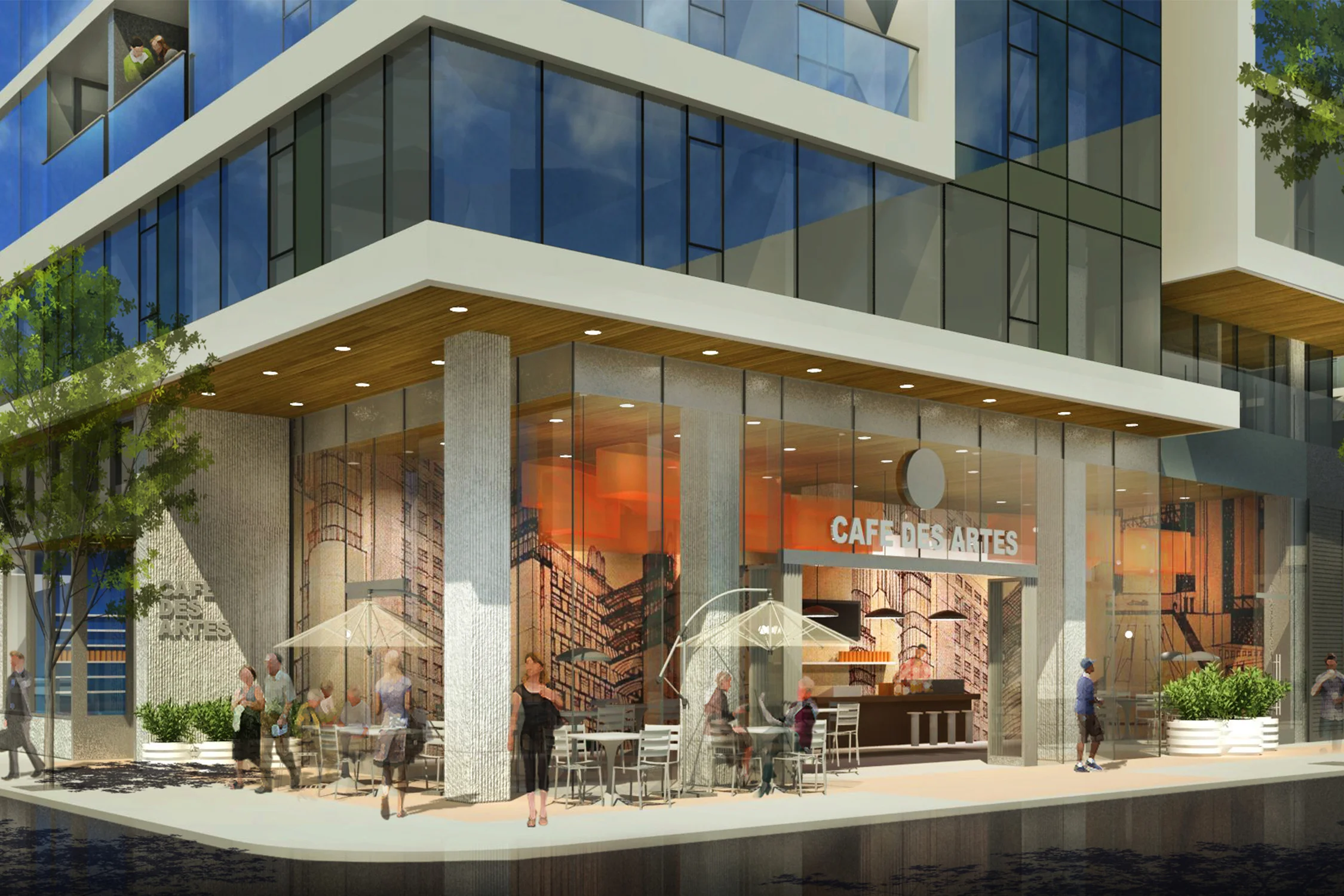 This 1,200,000 sq ft, two tower, high-rise, urban infill development in San Jose, California, will provide 708 luxury condominium units and 14,000 sq ft of retail space. Amenities include on-site parking, fitness center, owner lounges, elevated sky terraces, and a pool deck. The design uses two exterior skins to break up the overall mass of the towers and create a "Floating Tower" effect. A lighter, articulated skin is overlaid onto the primary façade of smooth dark glass to add depth and movement to each tower. Projecting balconies create additional texture to the towers and private space for residents. The symmetrical design has a strong axial relationship, highlighting the main residential lobby. The lobby, with full glass exterior walls, calls back to the waiting halls of the Greyhound Bus terminal, originally on this site.